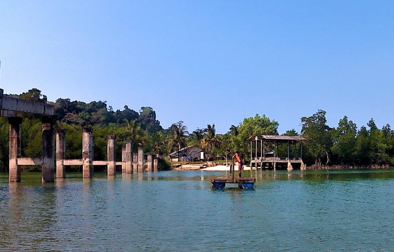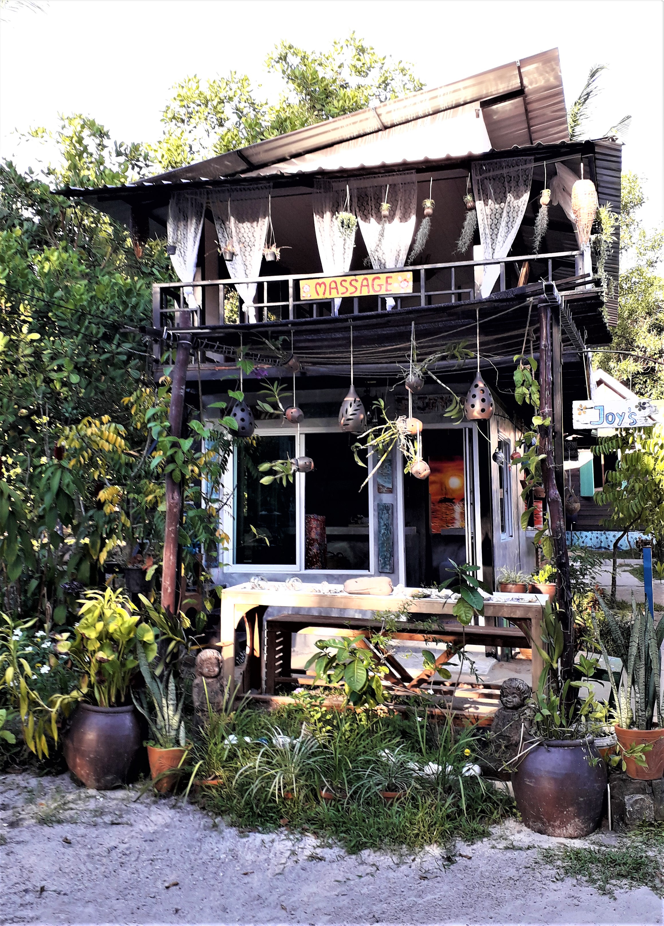 e ritorno in centro per andare in banca. E mi rendo conto che qui la violenza sembra non esistere: porte di vetro senza nessun controllo. Pranzo da un’ambulante con un’ottima zuppa di carne e patate, tutto rigorosamente super piccante, e prendo il bus per raggiungere il traghetto. Koh Phayam sto arrivando! Il bus pubblico, un vecchio pk modificato guidato da un vecchietto thailandese lentissimo, mi lascia sulla strada principale. Faccio 200 metri correndo per non perdere il traghetto e, fatto il biglietto, il ragazzo della biglietteria mi da uno strappo su un carrettino attaccato alla moto. Salgo sulla barca, passando per una pedana instabile a rischio caduta 50%, e raggiungo l’isola dopo quasi due orette, passando per acque non proprio cristalline e piccoli isolotti pieni di mangrovie. Ci siamo!