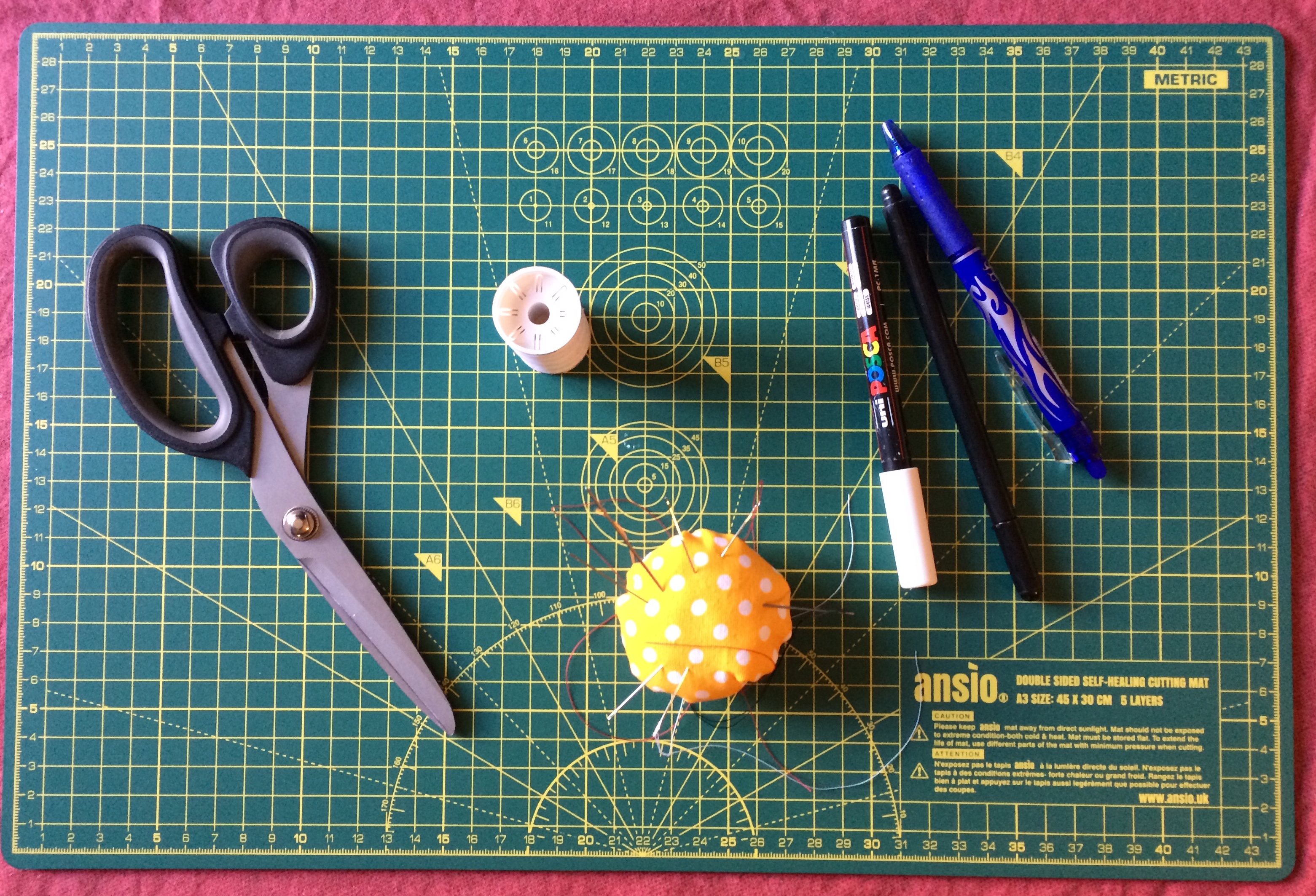- ago (anzi, aghi!) e filo: un rocchetto per ogni colore base (bianco, nero, azzurro, rosa, arancione, verde, rosso, blu, giallo, etc..). Decidete voi in quale gradazione sceglierlo, ma non è necessario avere rocchetti di tutte le sfumature; ne basta uno per tipo.