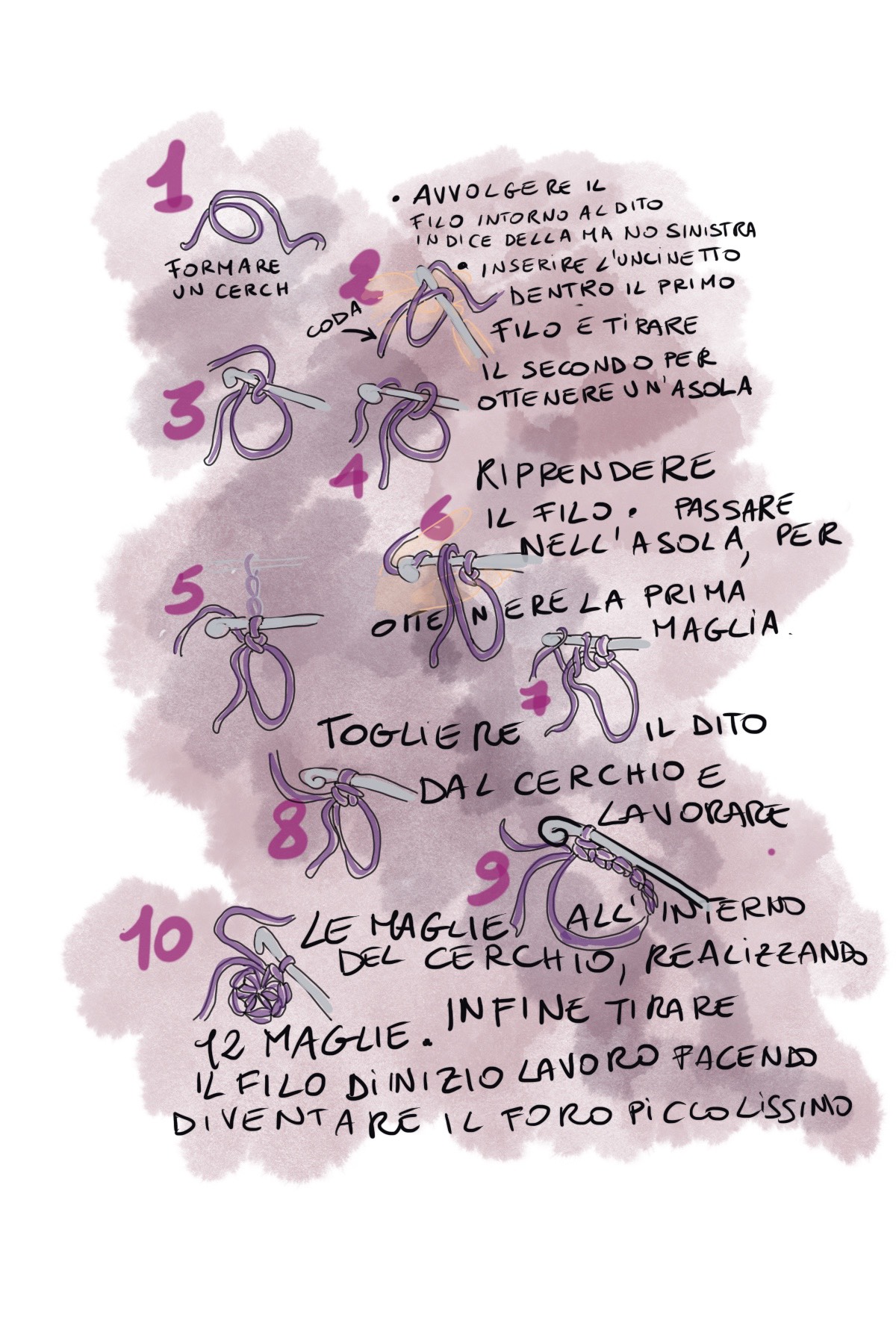 realizzare un cerchio magico all’uncinetto e dentro lavorarci 12 maglie alte e fermare il filo.