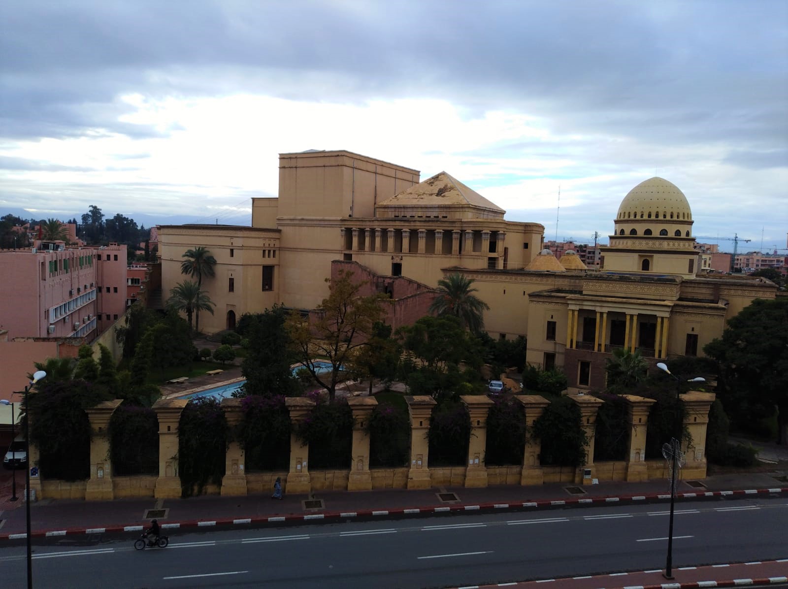 Odio tutto l’iter di consegna e restituzione dell’auto ma non è stato complicato né abbiamo perso molto tempo e in una decina di minuti abbiamo raggiunto il nostro primo hotel a Marrakech, nella parte moderna della città. È un tardo pomeriggio del 18 novembre e qui ci passeremo solo la prima notte per riposarci; ritorneremo la settimana successiva per trascorrerne altre tre. Il tour prevede poi il secondo e terzo giorno Casablanca, il quarto partenza per Fez, dove ci fermeremo tre notti, con sosta a Meknes nel pomeriggio, una notte a Rabat e ritorno alla base, dove passeremo le ultime tre giornate. A Marrakech l’hotel è caratteristico, pavimentazione a mosaico e arredamento antico; e la vista dal balcone non è male.