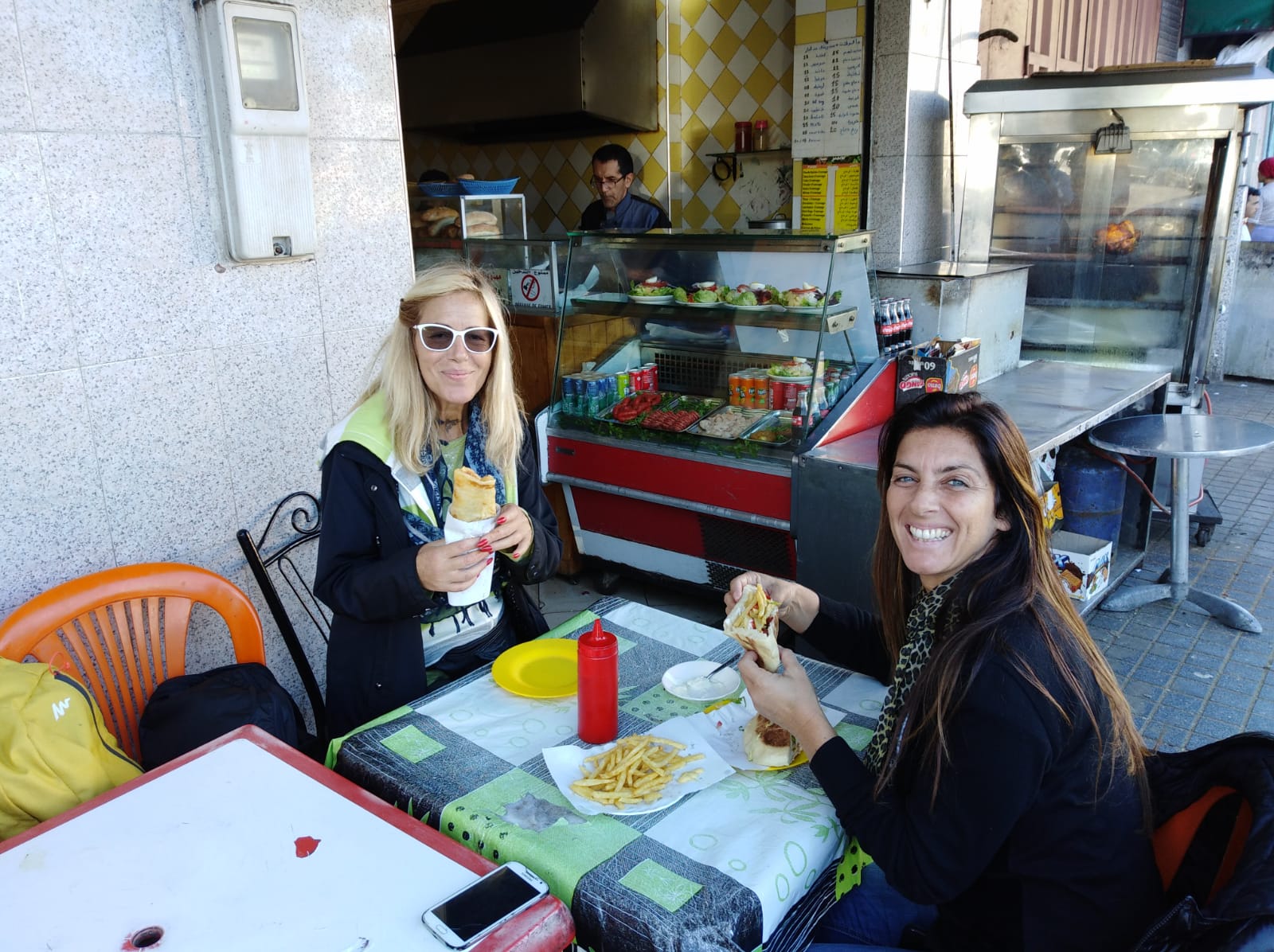 Restiamo stupiti dalle larghe e curate strade e non si ha una sensazione di povertà, anzi, come ha ripetuto per tutto il viaggio il conducente: “ca stannu megghiu i nui”! (qua stanno meglio di noi). Ci sono dei palazzi stile case popolari (dove non oso immaginare in quanti ci vivano) e la pulizia non regna sovrana ma questo fa parte della loro cultura e non a niente a che vedere con la ricchezza. Al nostro primo impatto, e l’opinione è unanime, qui in Marocco vivono decentemente! Eravamo diretti in hotel ma ci perdiamo nel centro di Casablanca quindi decidiamo di fare un giro nella parte vecchia della città e ci immergiamo nel nostro primo mercato. Ci separiamo per mangiare e io e Sandra proviamo subito il tipico pane marocchino, le mssemen, una specie di crepes sfogliate che facciamo farcire con carne e verdure: ma che buone!