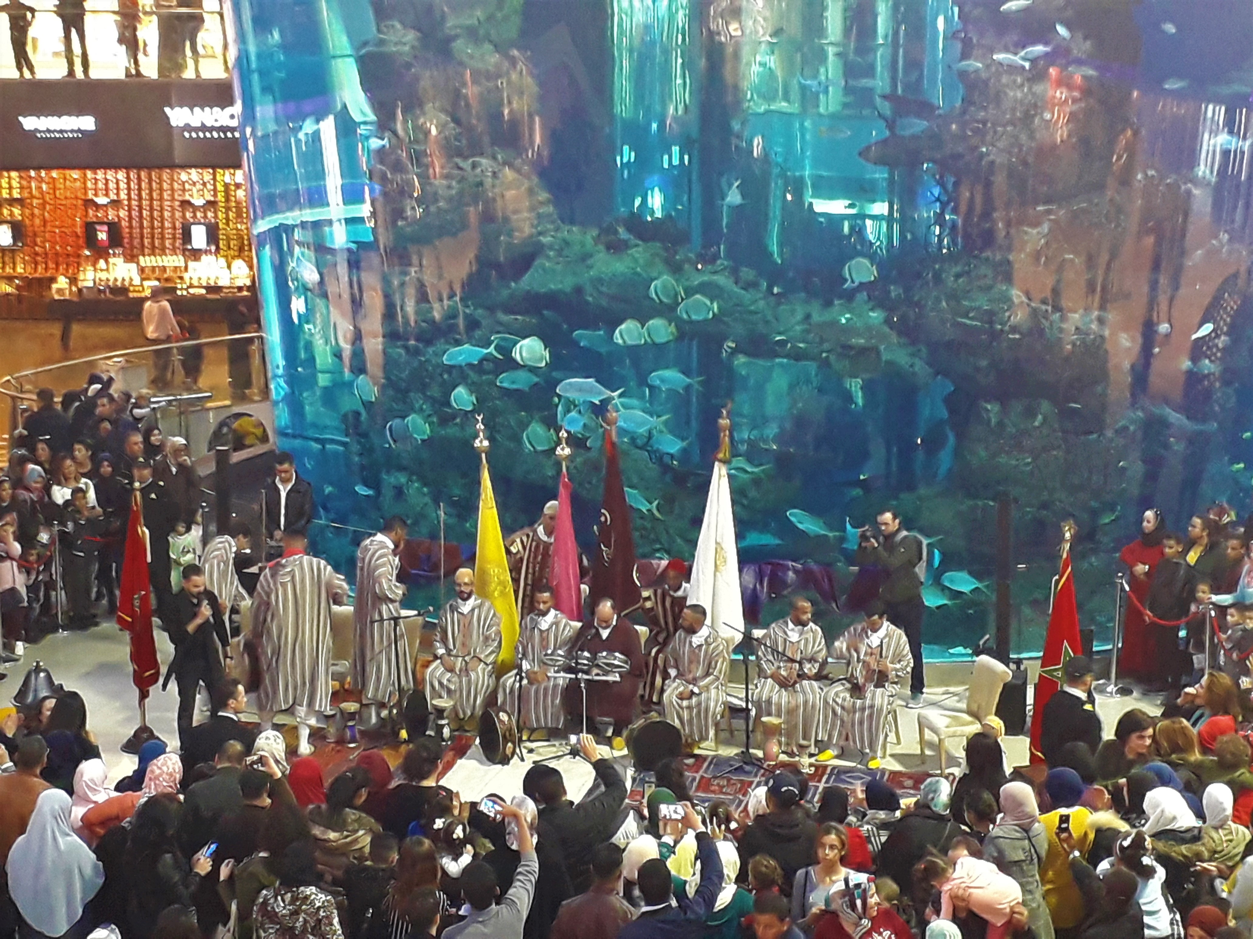 All’interno, i lavori di intaglio in legno, le decorazioni, i mosaici nei pavimenti e nelle pareti, i soffitti cesellati e i rilievi in stucco ti lasciano senza parole. Questa enorme e maestosa sala può accogliere fino a 25 mila fedeli ed è decisamente un luogo incantevole da visitare. Lasciamo il luogo sacro per andare al Morocco Mall, il più grande centro commerciale dell’Africa al cui interno c’è un acquario costruito in un grosso cilindro, dove tantissimi pesci colorati e squaletti girano intorno in continuazione riuscendo addirittura a distrarre gli appassionati dello shopping, Sandra in prima linea! Gironzoliamo li due orette, ci rilassiamo ascoltando un po’ di musica mentre assaporiamo il famoso tè alla menta marocchino e ci godiamo questo pomeriggio in relax, nonostante la confusione, tipica di questi posti.