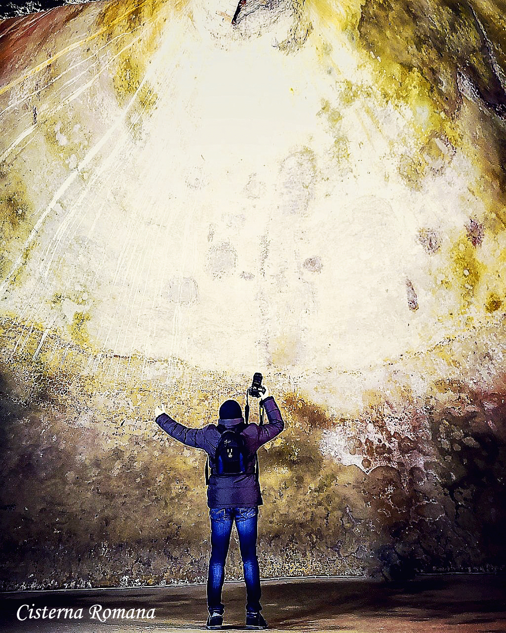 Badate bene che la galleria umida e misteriosa potrebbe intimorivi, sentirete risuonare l’eco dei vostri passi e io trovo che la mistica sensazione di essere spiati sia davvero eccitante tanto da farvi sentire dei piccoli Indiana Jones. Giunti alla cisterna si ha come la sensazione di entrare dentro ad un uovo, la sua forma ovoidale è completamente rivestita di coccio pesto, l’eco rimbalza da un lato ad un altro proprio come una pallina da ping pong, vi sentirete minuscoli sotto la sua volta. Questa non è l’unica cisterna presente nell’insediamento, ma è quella che nell’arco del tempo ha meglio conservato la sua forma originale.