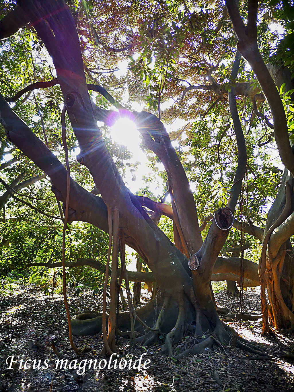 Sempre sulla sinistra incontriamo un’altra cava romana, questa volta all’aperto, dove un enorme ficus magnolioide dal fusto possente e da enormi radici colonnari funge da tetto ad un fiabesco sottobosco.