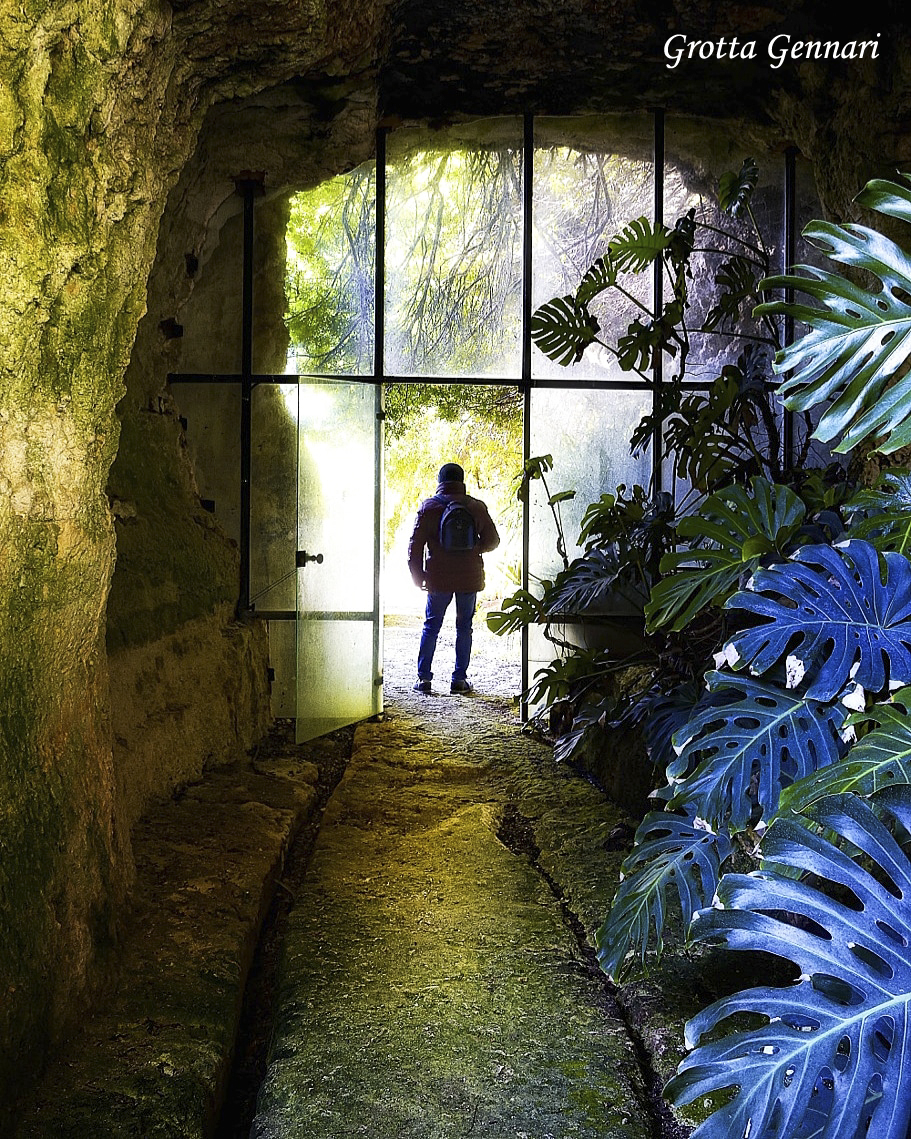 Un poco più avanti del suddetto reperto storico incontriamo la Grotta Gennari… esatto prende il nome del fondatore del parco. Io la trovo estremamente conturbante, è un sito archeologico che risale al IV secolo. In antichità era il luogo di decantazione dell’acquedotto, oggi è destinata ad accogliere felci ed altre specie ombrofile. E’ riparata da una vetrata che impedisce ai raggi del sole di entrare in maniera diretta, proiettandoli con la giusta angolazione come se fosse una serra. Entrandovi si ha la sensazione di inoltrarsi in una giungla dove un folto philodendron rampicante pare voglia rapirvi afferrandovi con le sue radici aeree.