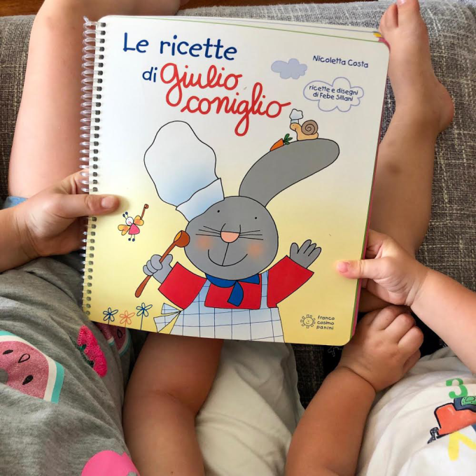 Quando la mia “grande” Emma aveva 3 anni le ho comprato il libro di ricette del mitico Giulio Coniglio e tuttora, a quasi 6 anni, lo sfoglia rapita, scegliendo con entusiasmo ricette da replicare. Un albo rilegato a spirale, molto divertente e ricco di ricette colorate: Giulio e i suoi amici rispecchiano il loro carattere tra i fornelli: dal tenero coniglio protagonista all’internazionale istrice Ignazio, dalla romantica lepre Gelsomina al dispettoso Valter la volpe, dal buffo topo Tommaso all’esperta oca Caterina.. ce n’è per tutti i gusti!