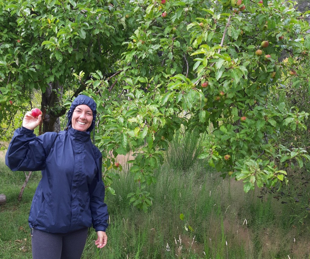 Al ritorno troviamo un albero di melette rosse e io e il mio compagno di avventure non ci pensiamo due volte. Raccolte e mangiate: ma che buone! E dopo questo lungo e rilassante breakci rimettiamo in cammino. Con lo zaino pieno ovviamente.