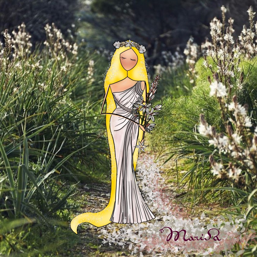 intrecciare coroncine di fiori d’asfodelo. Ne indossa una di giorno e